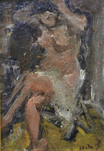 神奈川県藤沢市生。萬鉄五郎に師事し、中学の先輩だった鳥海青児に絵を学んだ。デッサン力には定評があり裸婦を数多く描いた。これは裸婦の中でも褐色や黒の暗色が力強い初期の作品。