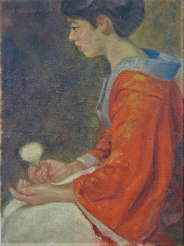 1910年の「アイヌ」による白馬会賞受賞などの活躍を経て、1914年(大正3年)、28歳で渡欧。1914年から22年までの長期にわたって滞在し、1920年頃に描いたもの。洋商鑑定証付き。