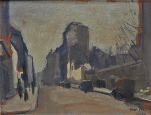 二科会所属。渡仏しドランらの影響を受け、「帽子を被る女」などの佳作を残した。渡仏時の1931年、27歳頃のもの。寒々しい曇天のパリの街角が素早く切り取られている。